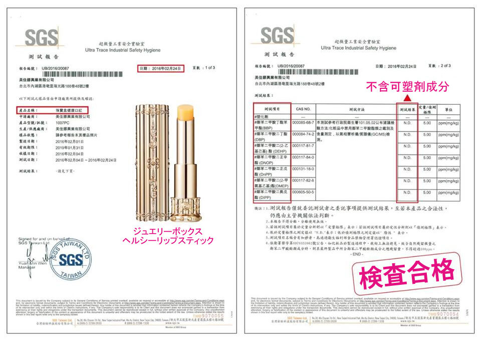 高い安全性:国際認証試験などを行うSGSの検査により、重金属や可塑剤などの健康に害のある成分は含まれていないことが証明されています。